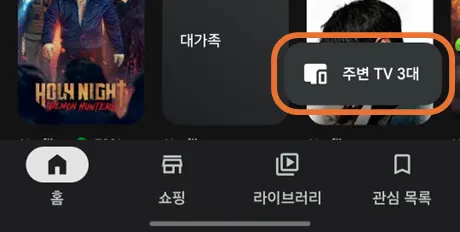 화면 우측 하단의 ‘주변 TV’ 혹은 TV 아이콘 버튼을 찾아 누릅니다.