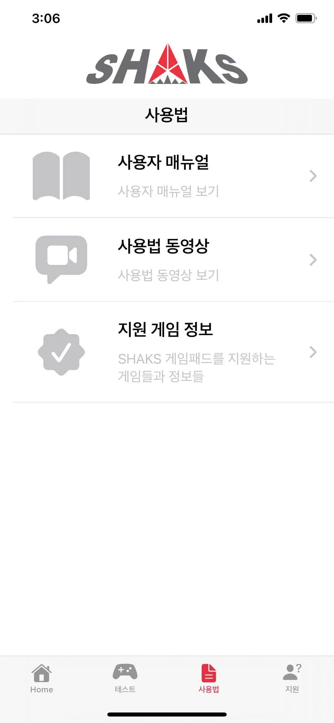 샥스 유틸리티(SHAKS Utility) 앱은 게임패드의 전반적인 기능을 원하는대로 변경 및 테스트, 업데이트 등을 위해 만들어진 앱으로서, 각종 게임마다 필요한 게임패드 옵션을 설정할 수 있는 기능을 제공합니다.