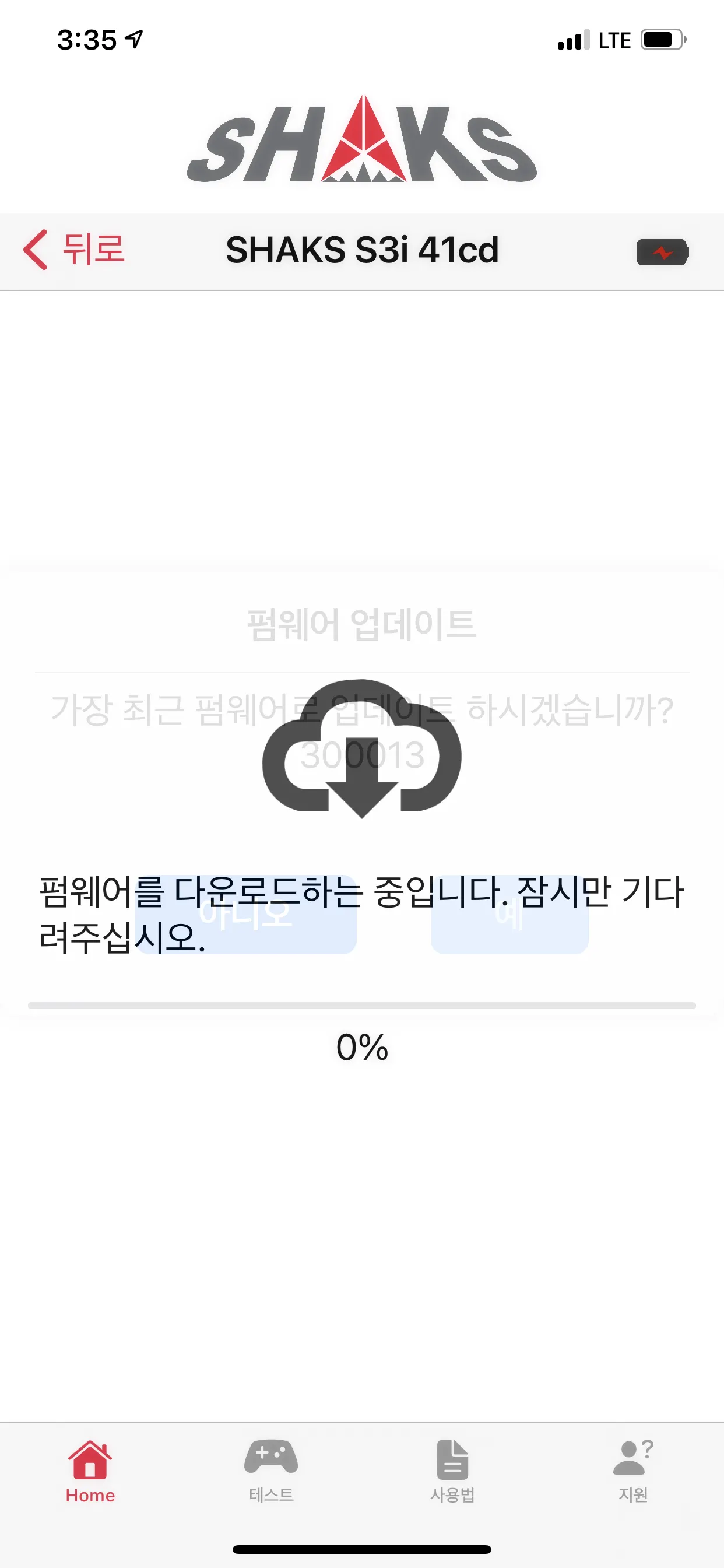 펌웨어 업데이트시는  충전 케이블을 연결하여 주시고, 충전 중인 상태에서만 업데이트를 진행할 수 있습니다.