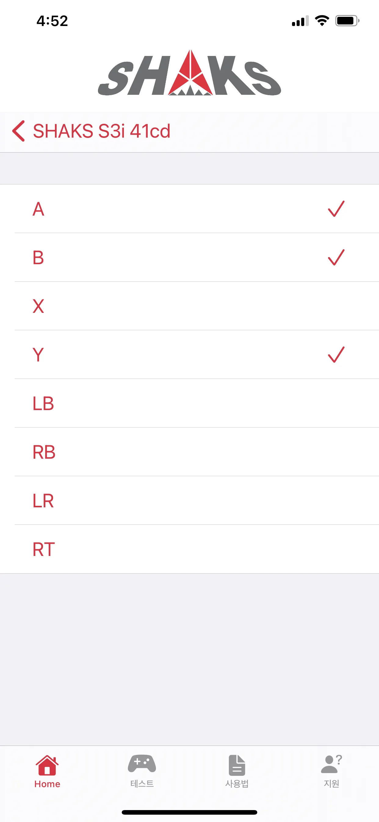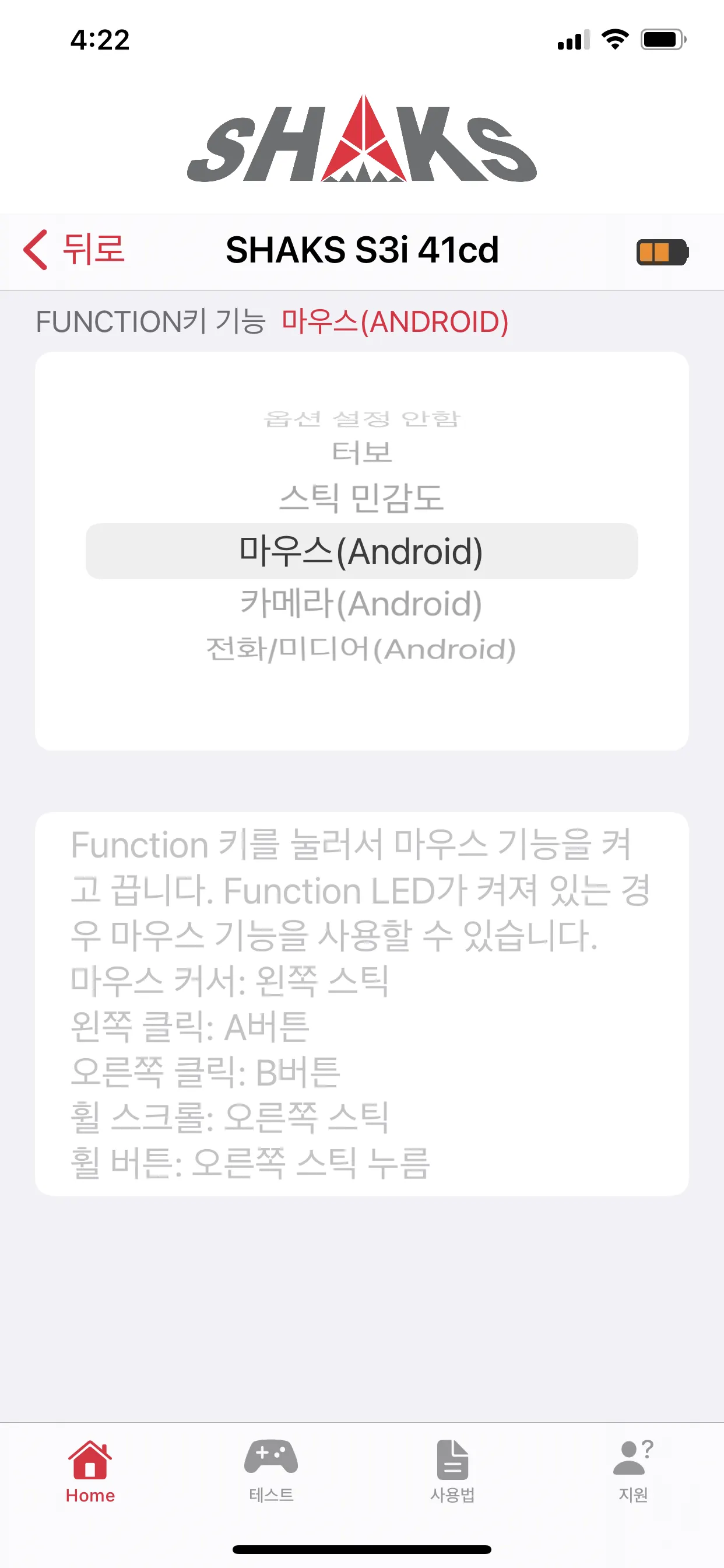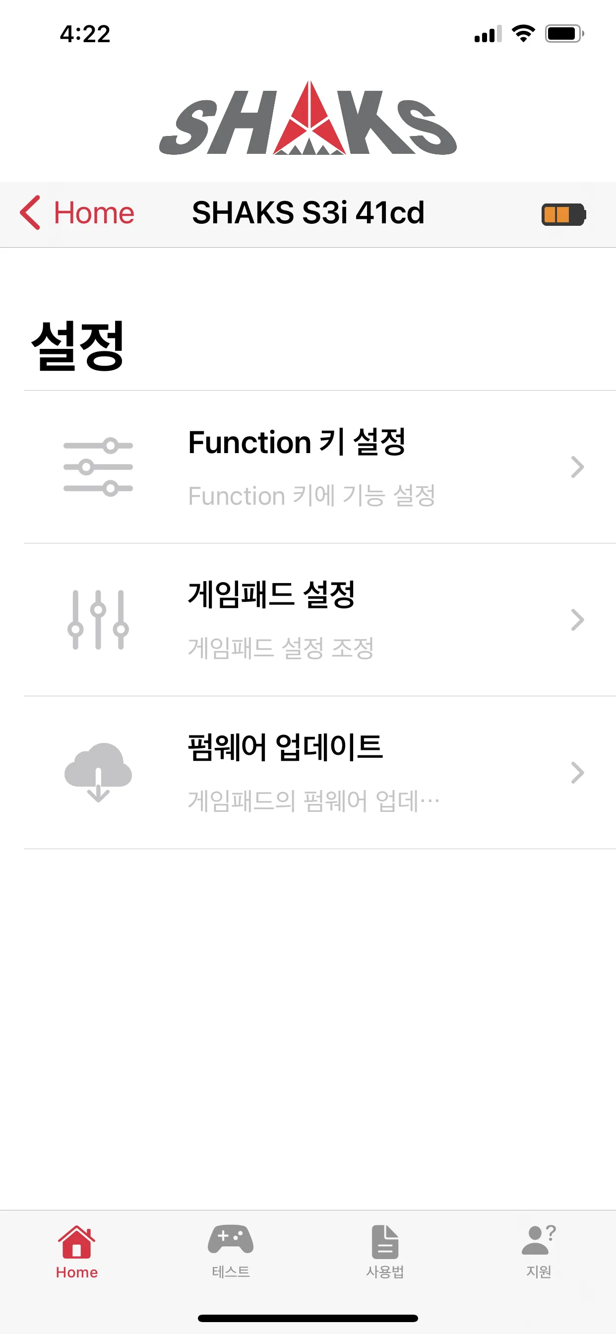 연결된 게임패드를 선택 합니다.게임패드 또는 SHAKS Gamehub 앱에 대한 각종 설정을 위한 메뉴입니다.