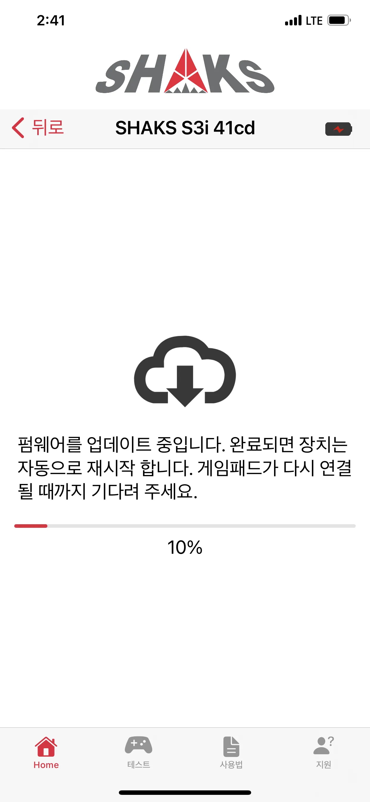 게임패드의 펌웨어 버전이 낮으면 빨간색으로 표시됩니다.