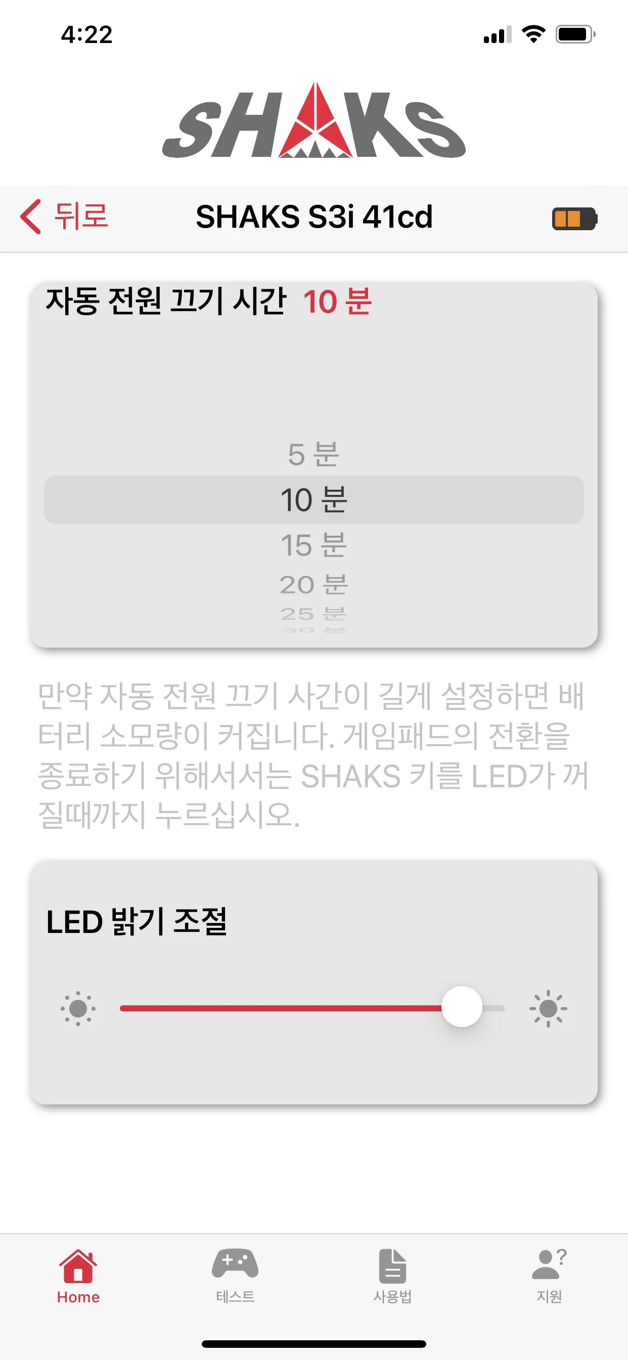 절전 시간, LED 밝기 조정 및  게임패드 이름 변경 등을 하실 수 있습니다.