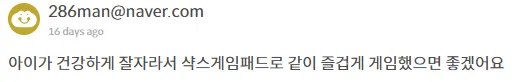 286man님, 저희도 아이가 건강하게 자라서 샥스 게임패드로 게임을 즐길 수 있기를 소망합니다♡