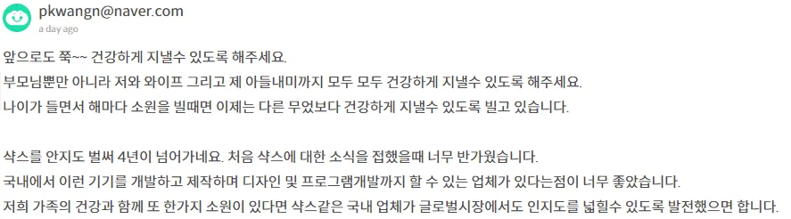 pkwangn님, 모든 가족의 건강을 소원을 빌어주셨습니다. 우리 샥스 가족들 모두들 건강하길 바랍니다 ♡