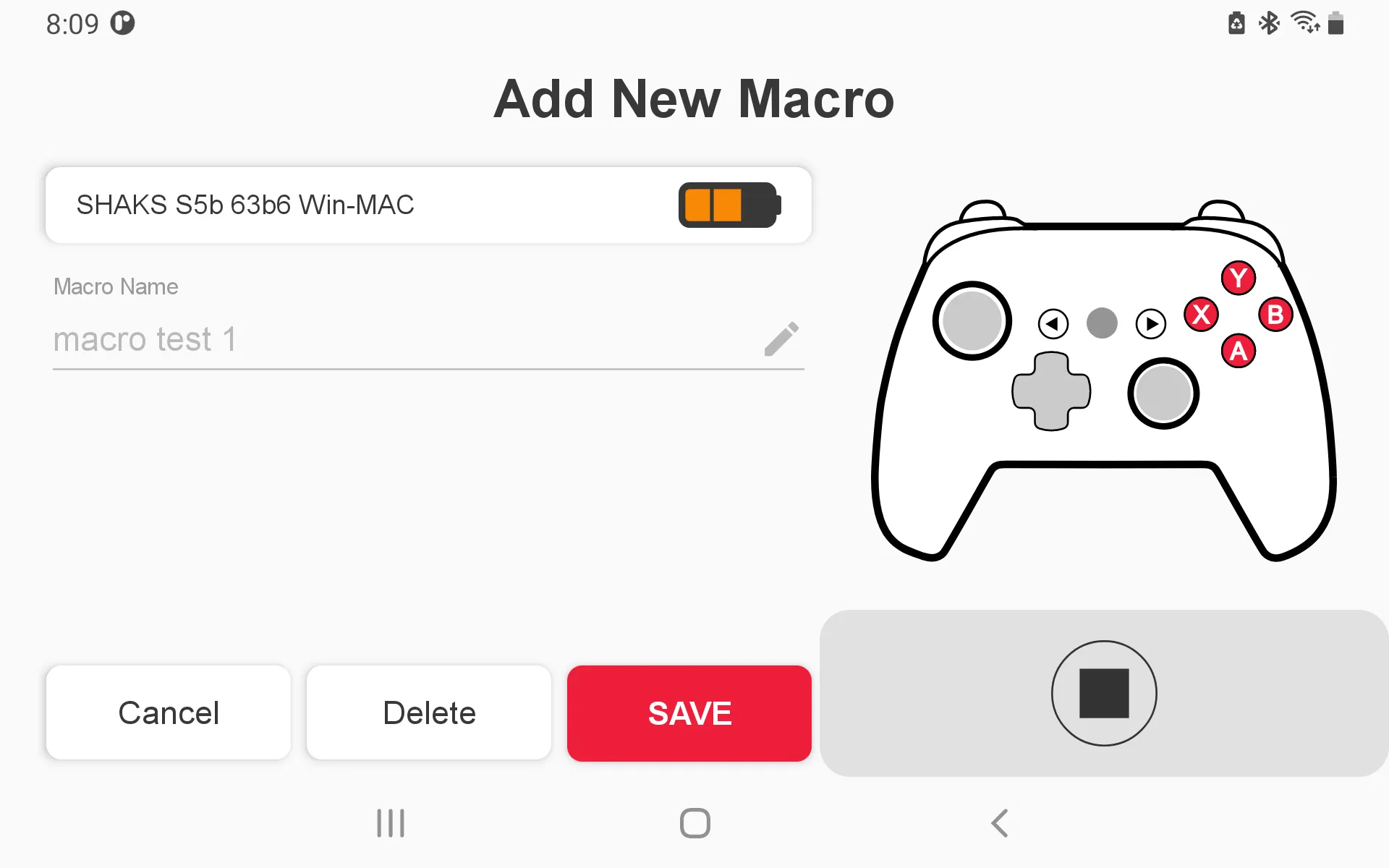 Pulsa el botón de grabación para registrar la entrada en el gamepad. Graba desde el momento en que se pulsa el primer botón.