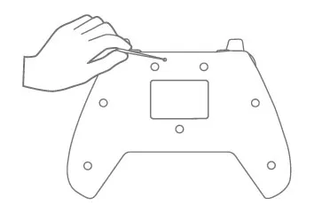 게임패드의 동작이 갑자기 멈추거나, 게임패드가 켜져 있지만, 어떤 버튼을 눌러도 반응하지 않거나, 게임패드가 꺼지지 않는 등의 문제가 생길 경우, 가는 철사, 클립 등을 준비하여 게임패드 뒷면의 바늘구멍에 1회 딸깍 하는 정도로 누르신 후 다시 사용해 보시기 바랍니다.