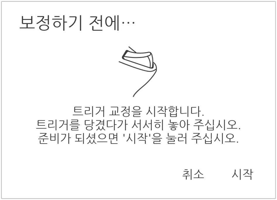 트리거를 화면의 지시에 따라 당긴 후, 진행바가 완료될 때까지 기다립니다.