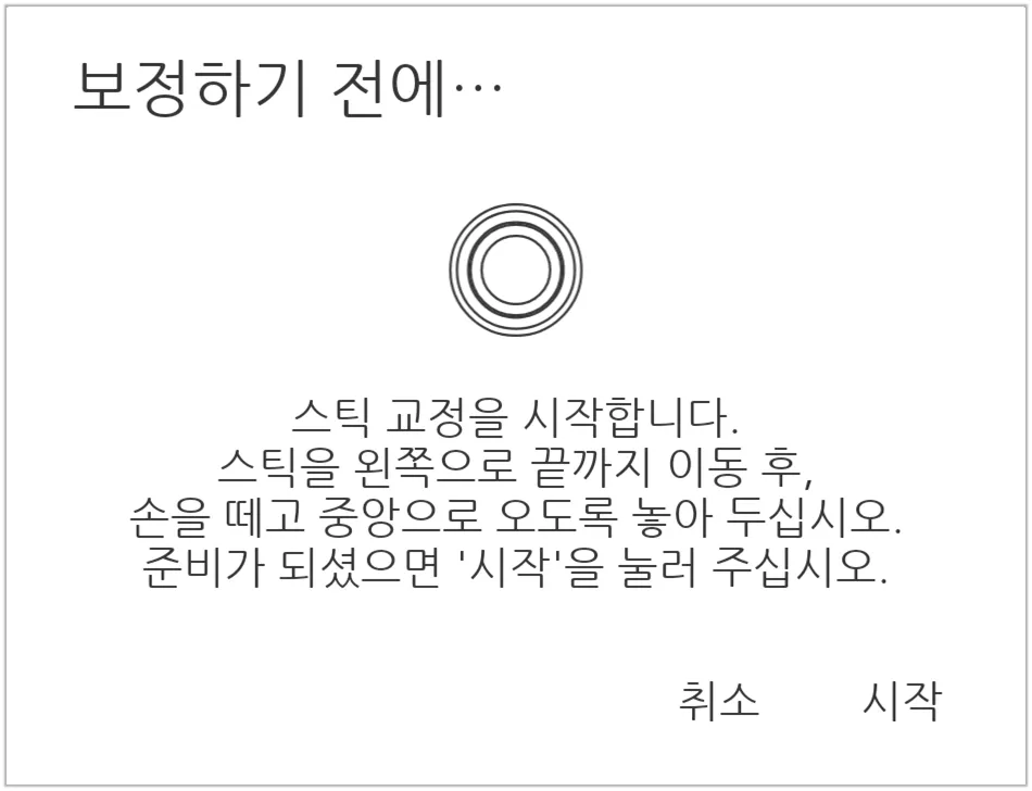 스틱 아이콘(LS 또는 RS)을 눌러서 보정을 시작합니다.