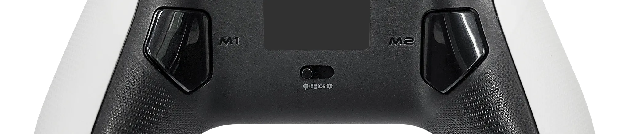 게임패드 뒷면에 있는 M1, M2 버튼은 앱을 통해 매크로 기능을 설정할 수 있습니다. 일반 단순 버튼으로 동작하지 않습니다.