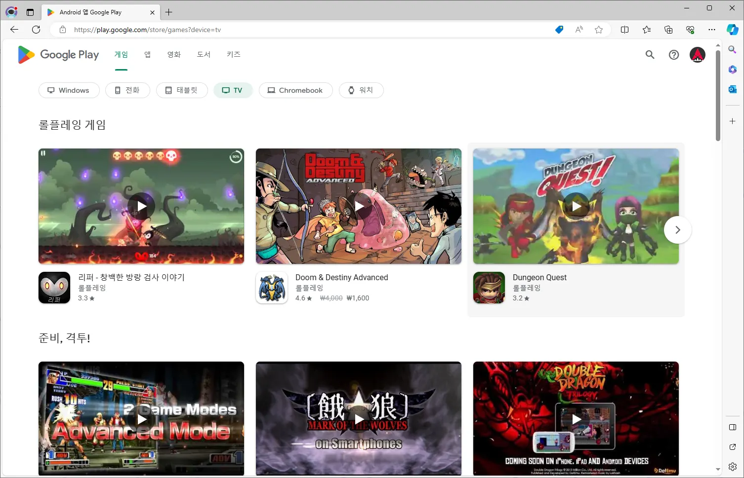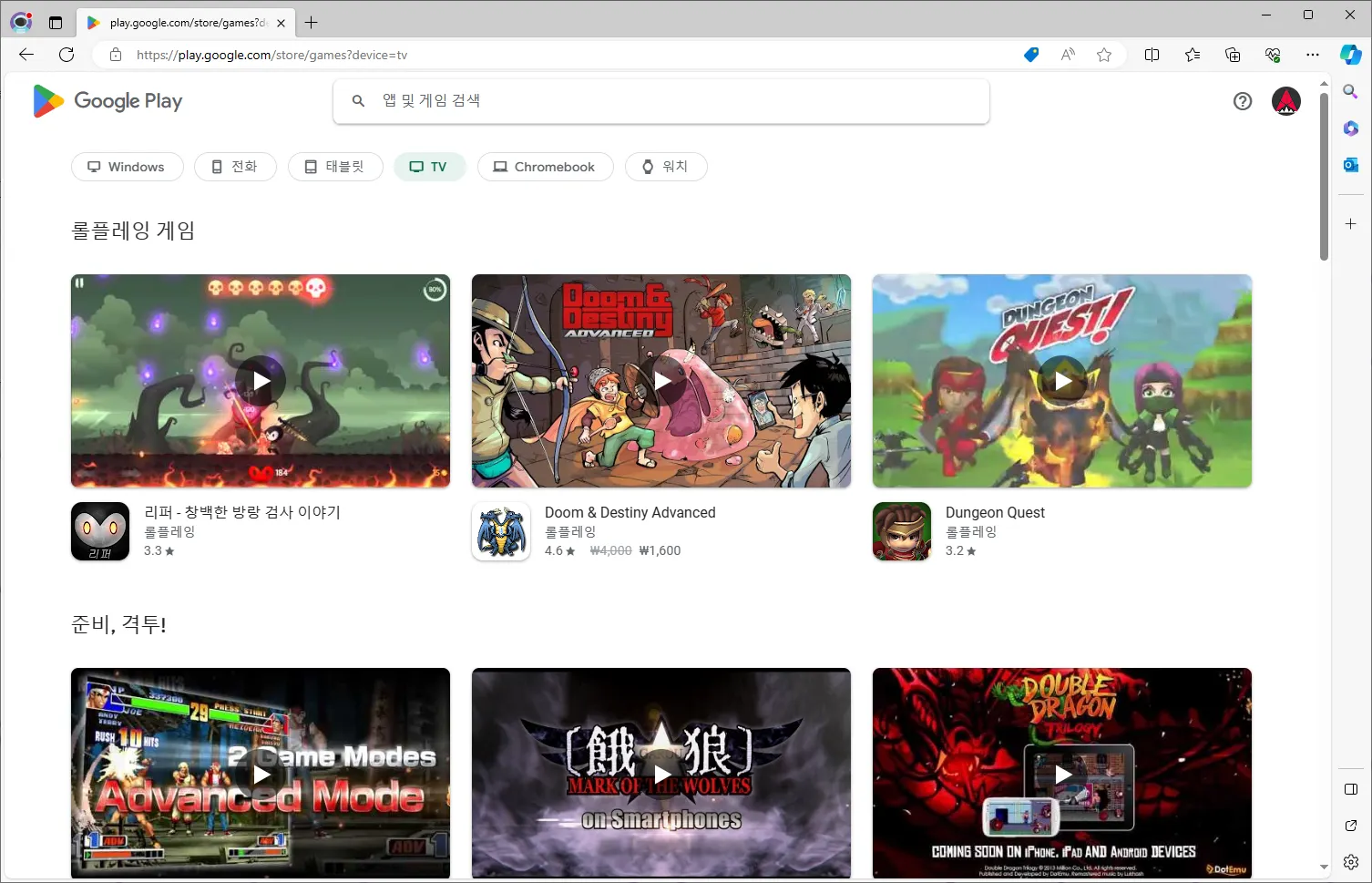 게임, 앱 카테고리 바로 아래에서 ‘TV’ 를 선택합니다.