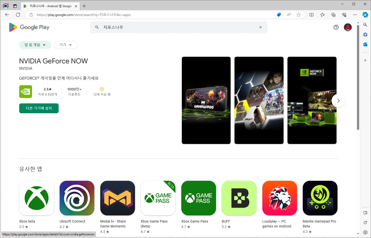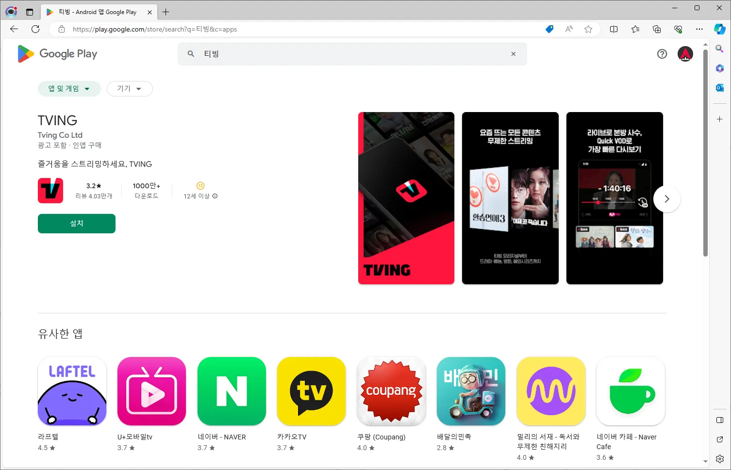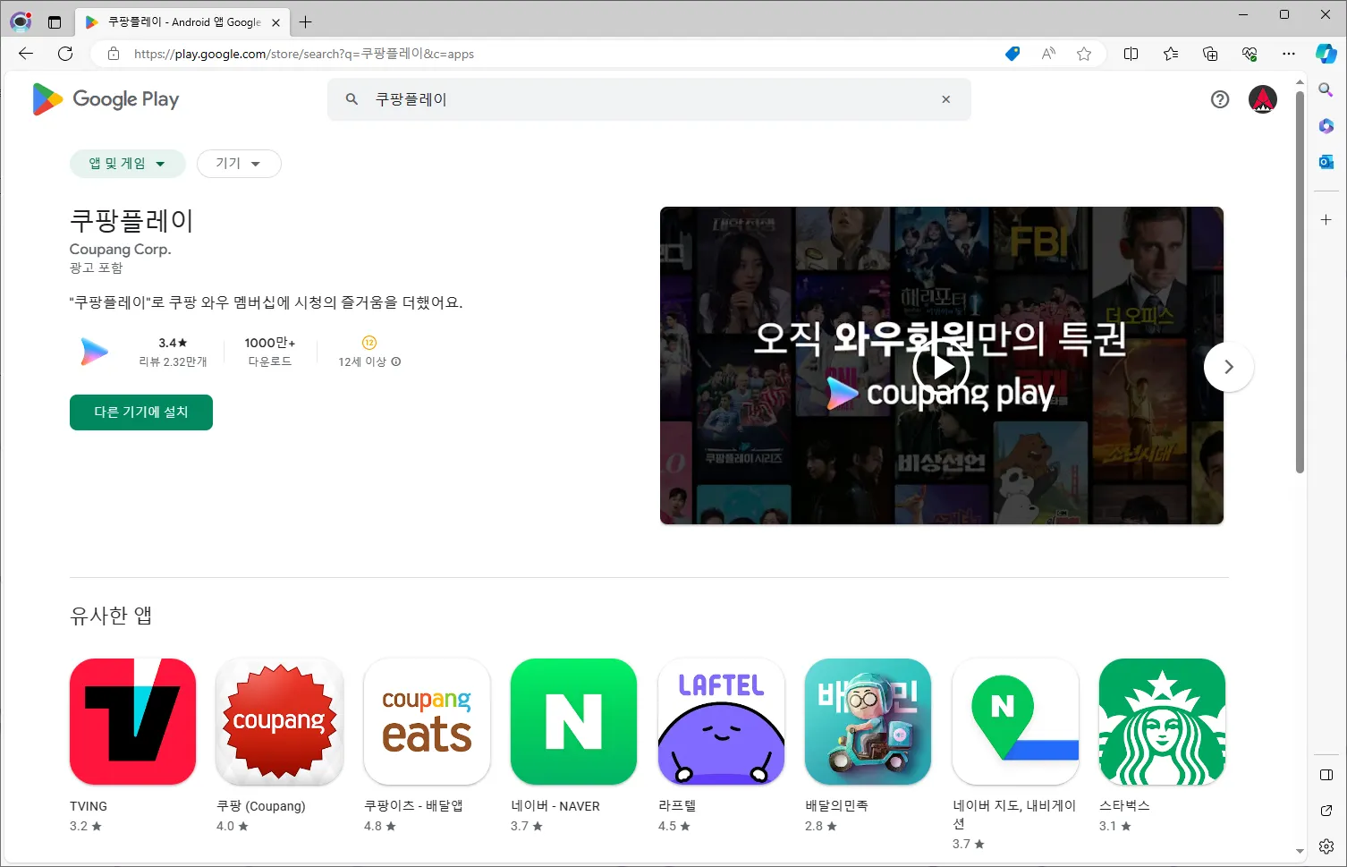 입력하시면 원하시는 앱을 바로 찾으실 수 있습니다. TV에 설치할 때 ‘다른 기기에 설치’ 라는 버튼이 나타납니다.