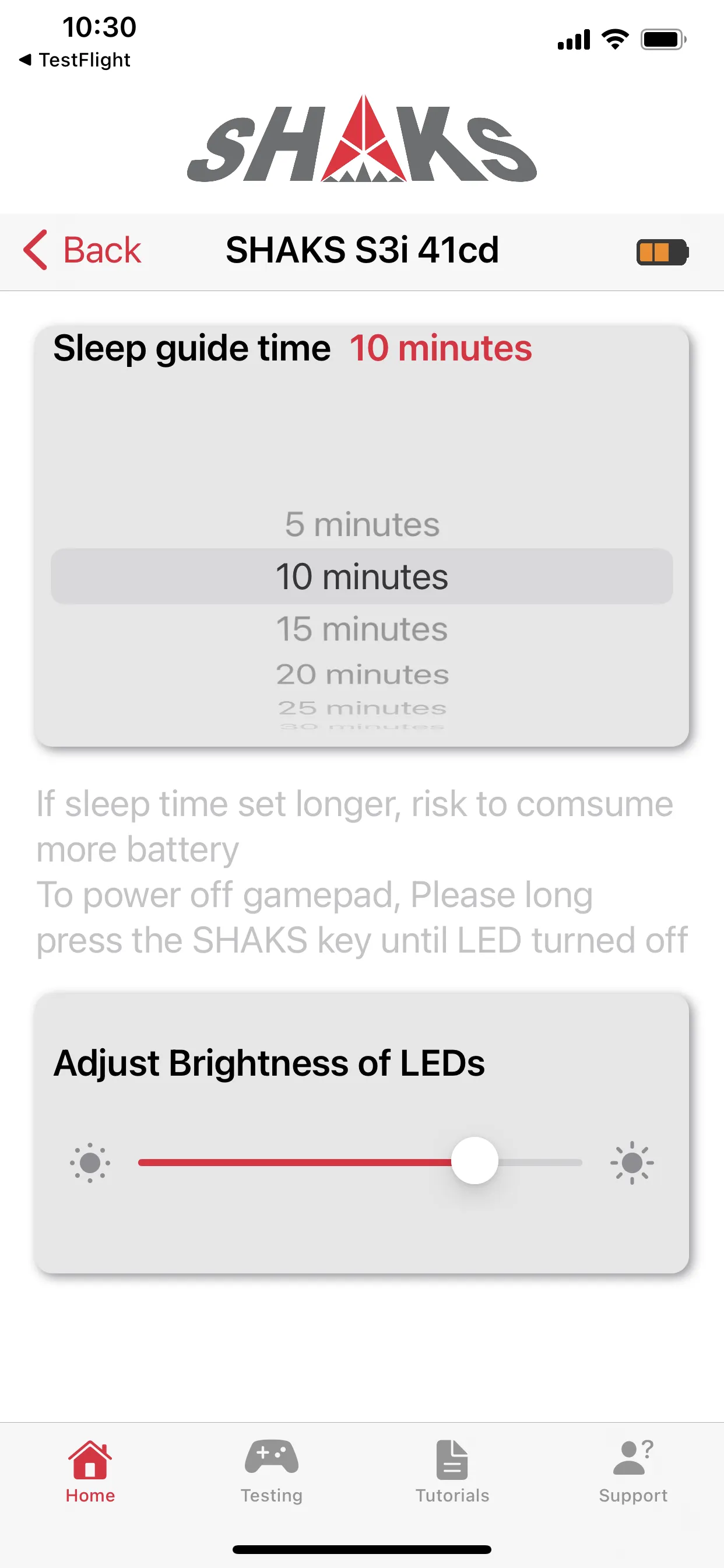 You can set features for the overall settings regardless of the gamepad's mode. You can adjust the power-saving time, LED brightness, and name of the gamepad.