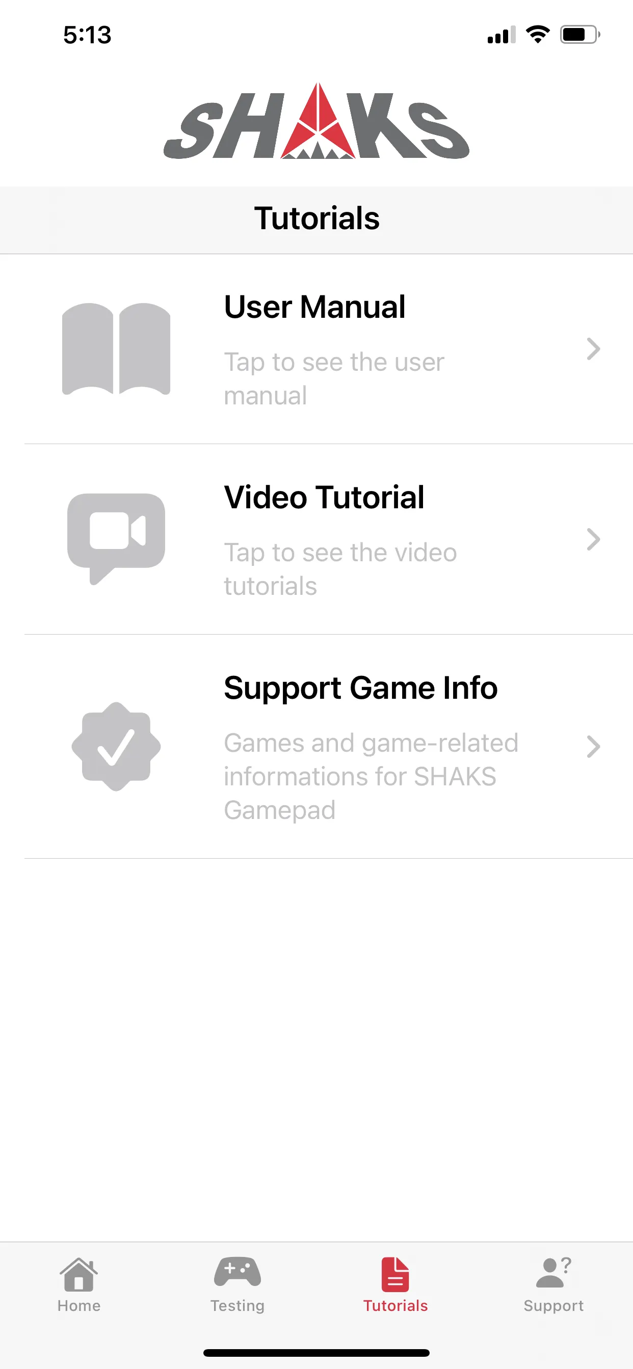 You can see the information you need for all product lines, regardless of device connection. You can open the game controller manual or the video guide. The Support Game Info menu shows the game list which user enjoy by game controller.