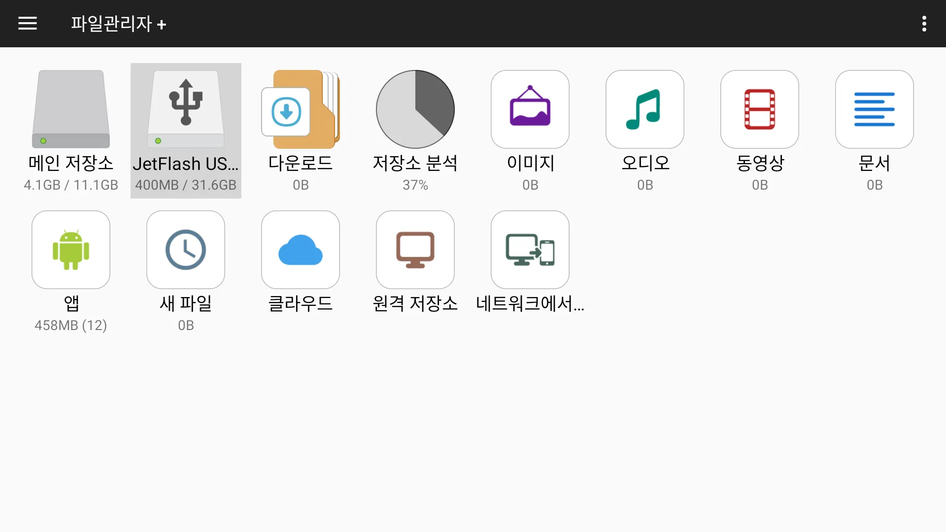 설치한 파일 매니저 앱을 실행하였으면 USB 저장소를 찾아갑니다.