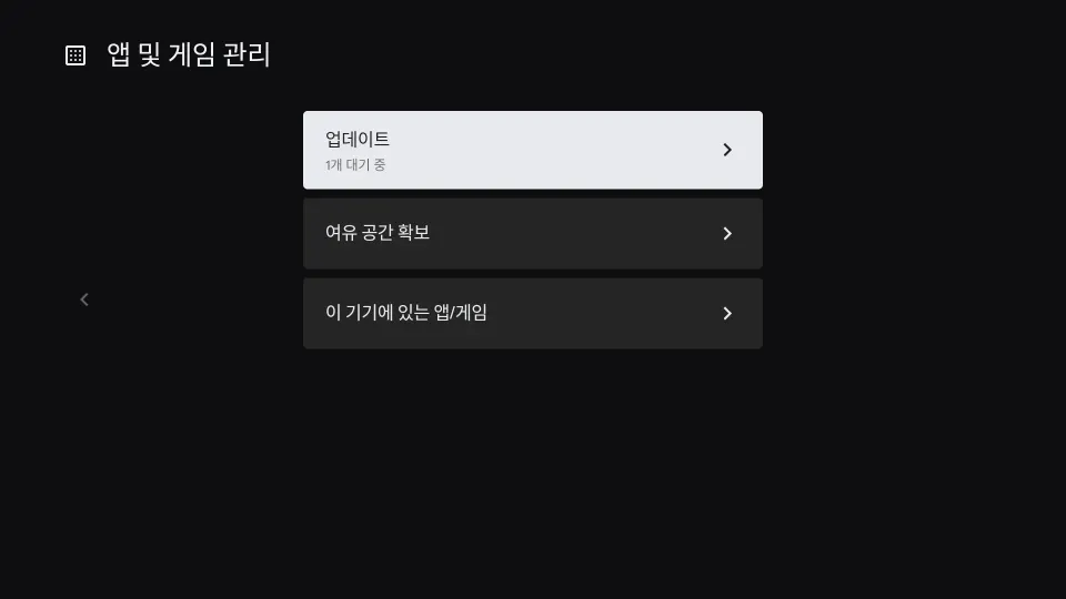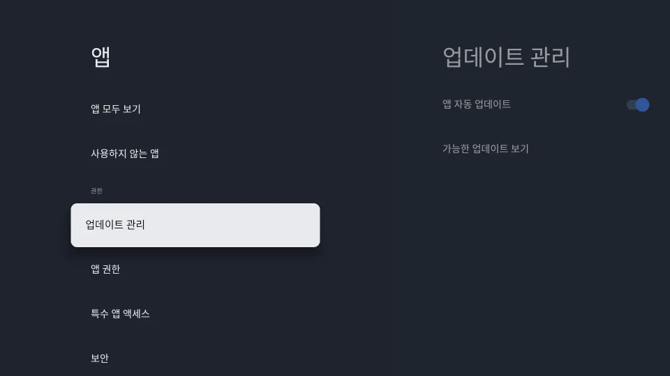‘앱(Applications)’ → 업데이트 관리 메뉴를 찾아 실행합니다.