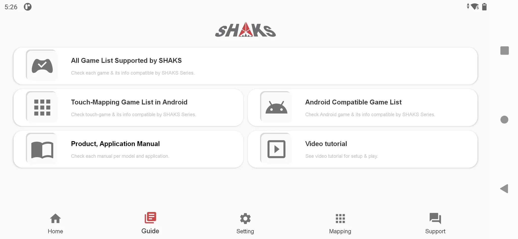 Also, it provides a compatible game list, its playing tips, manual, tutorials.  Please note that SHAKS has different application per each OS, and its feature is different each other according to OS & device.