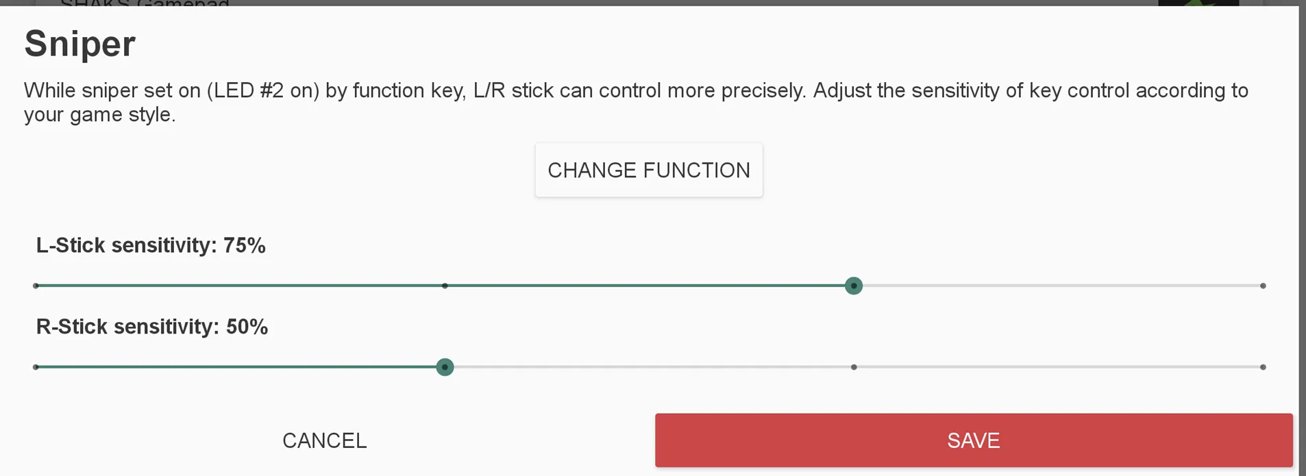 When you want to control precisely L/R joystick,  you can set sniper enabled.  Adjust the sensitivity upon each game scene and your skill.