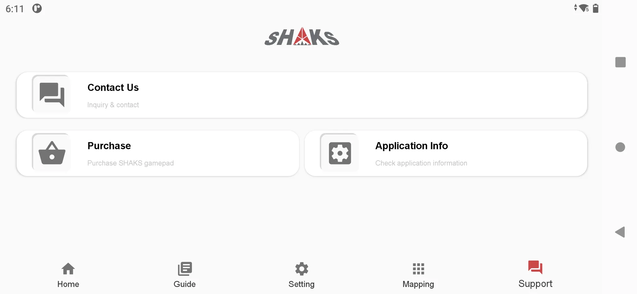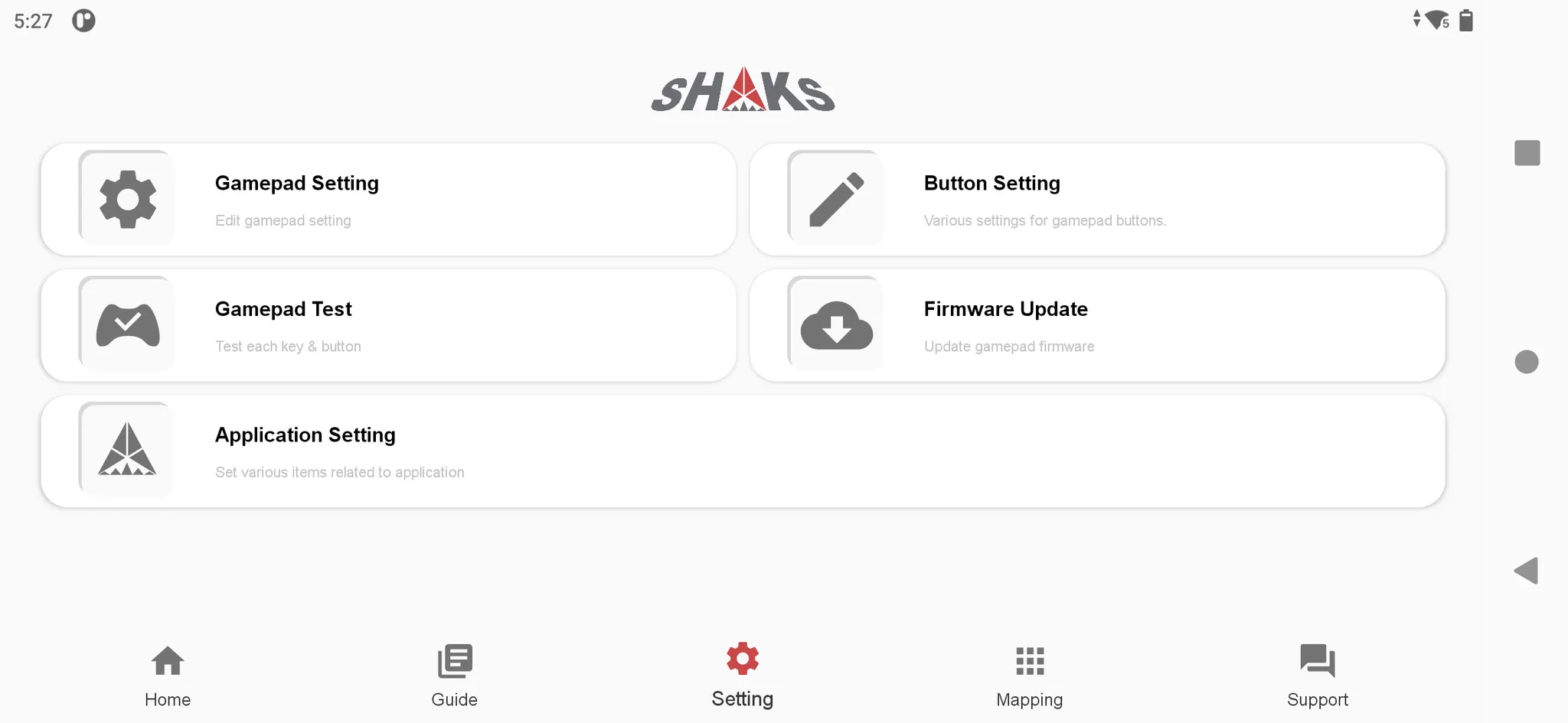 The SHAKS Gamehub application is designed for a better gaming experience using SHAKS high-end series S2x, S3x, S5x, and Snapdragon G3x Handheld Gaming Model, including the sniper, turbo, mouse setting, calibration of the analog stick, mapping feature, self-test, and FW remote update, etc.