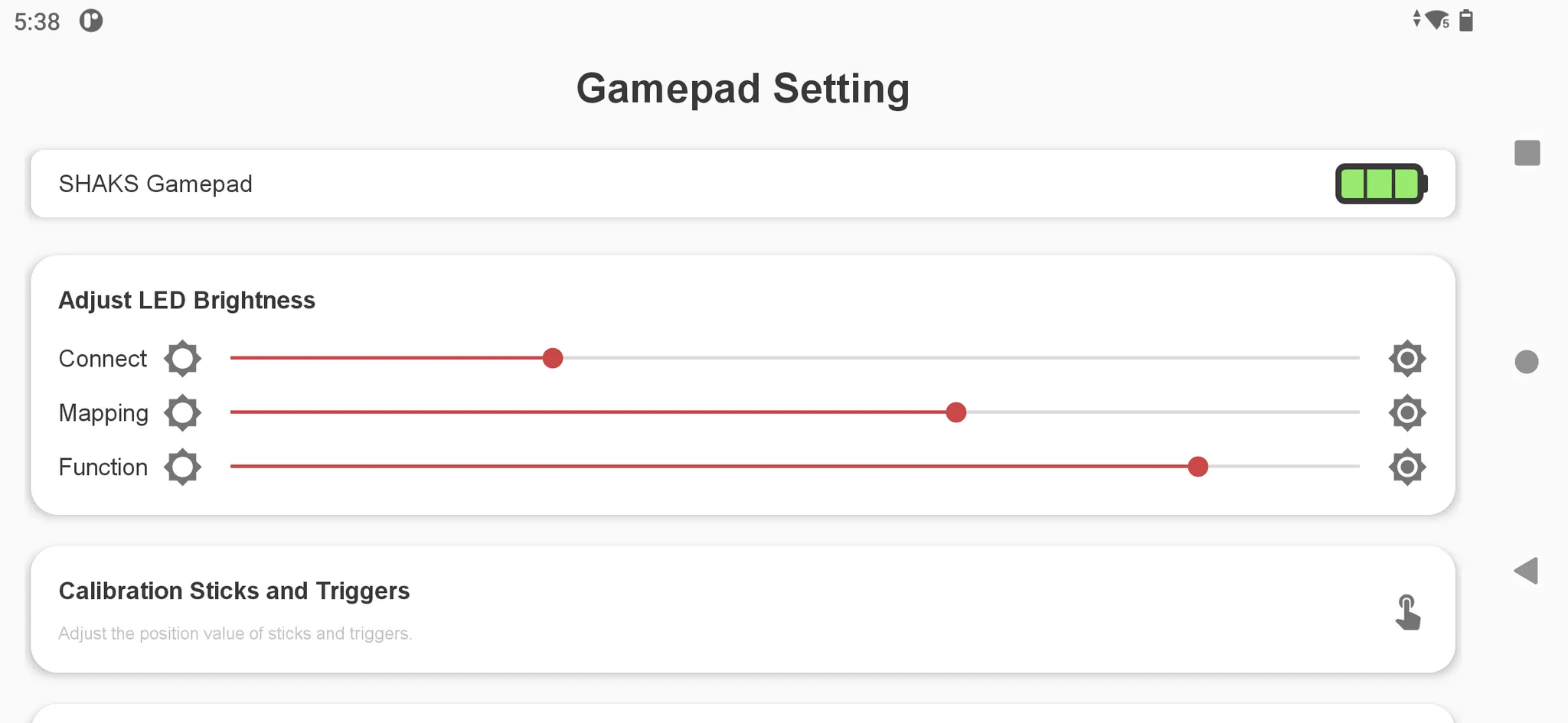 You can set LED brightness, calibration stick & trigger keys, and reset gamepad
