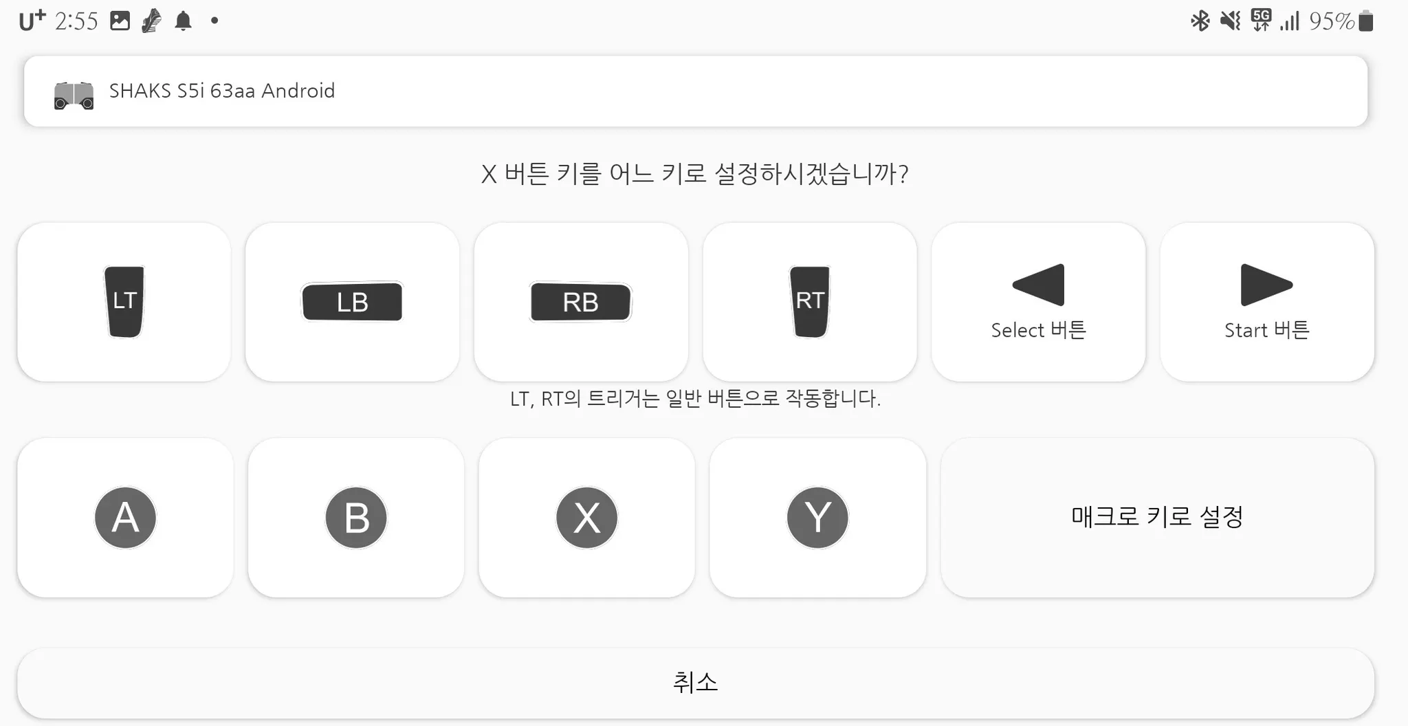 LT, RT 버튼을 다른 버튼으로 설정하거나, 다른 키를 LT, RT 버튼으로 적용했을 때는 모두 일반 버튼처럼 작동합니다.