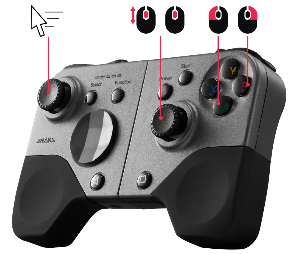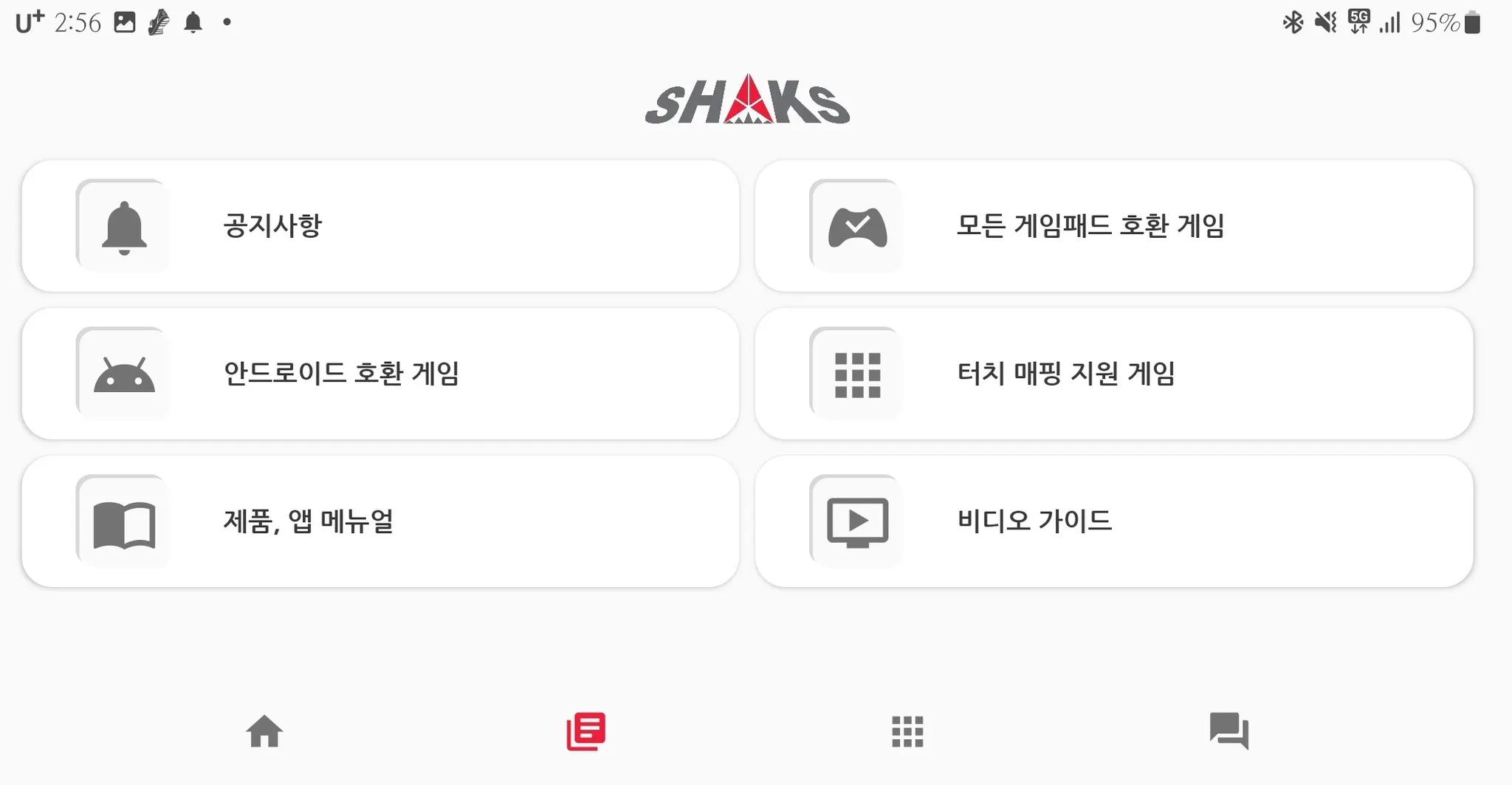 샥스 게임허브 (SHAKS Gamehub) 어플리케이션은 샥스 게임 컨트롤러로 더욱 실감나게 상황에 적합하게 다양한 기능을 제공합니다. 사용 OS 디바이스에 따라 각기 다른 앱이 있으며, 기능이 다릅니다. 이 메뉴얼은 안드로이드 계열 디바이스용으로 호환 게임 정보, 터보, 스나이퍼, 스틱 위치 재조정, 터치 게임 플레이를 위한 매핑 기능 등을 포함하고 있습니다.