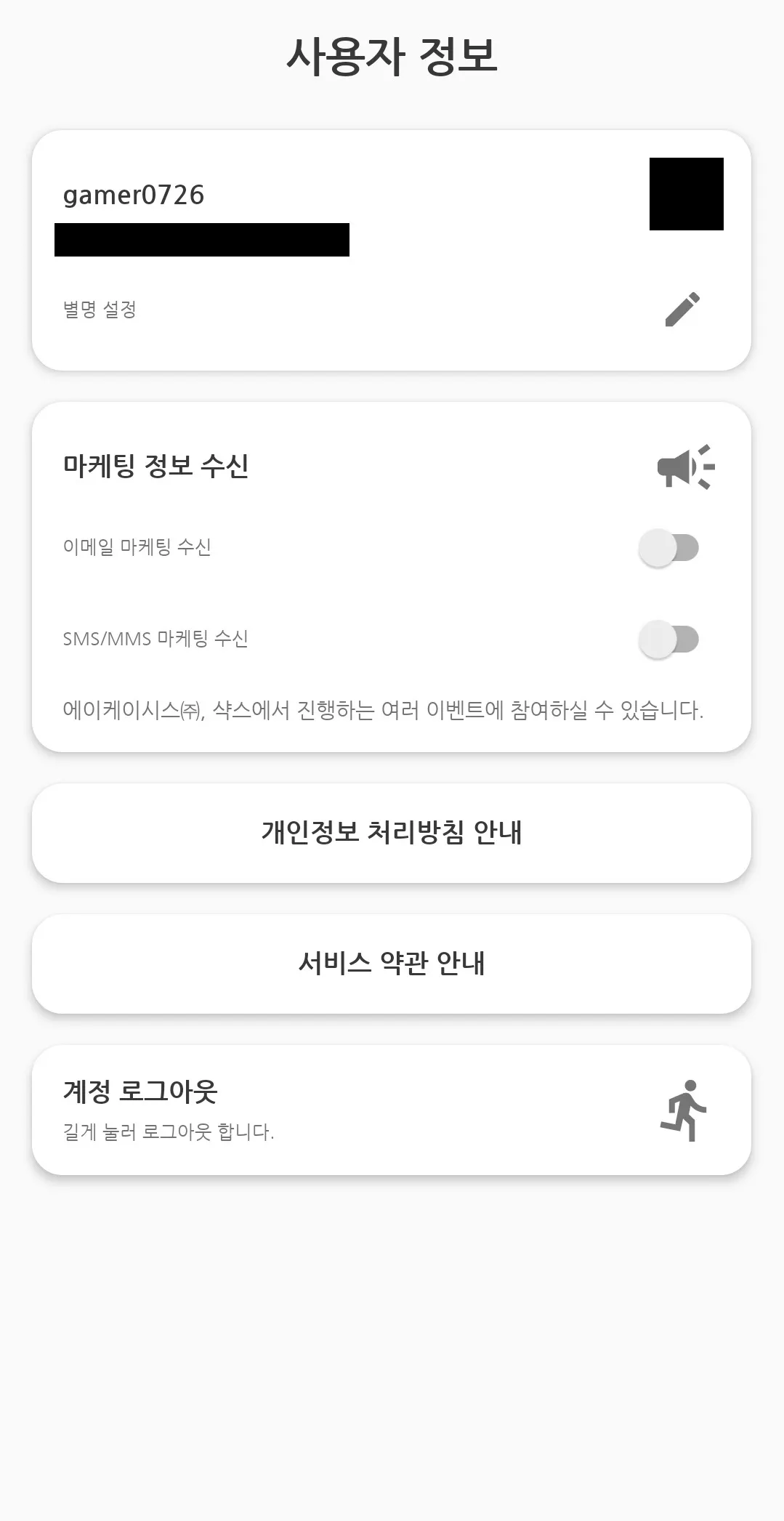 마케팅 정보 수신
