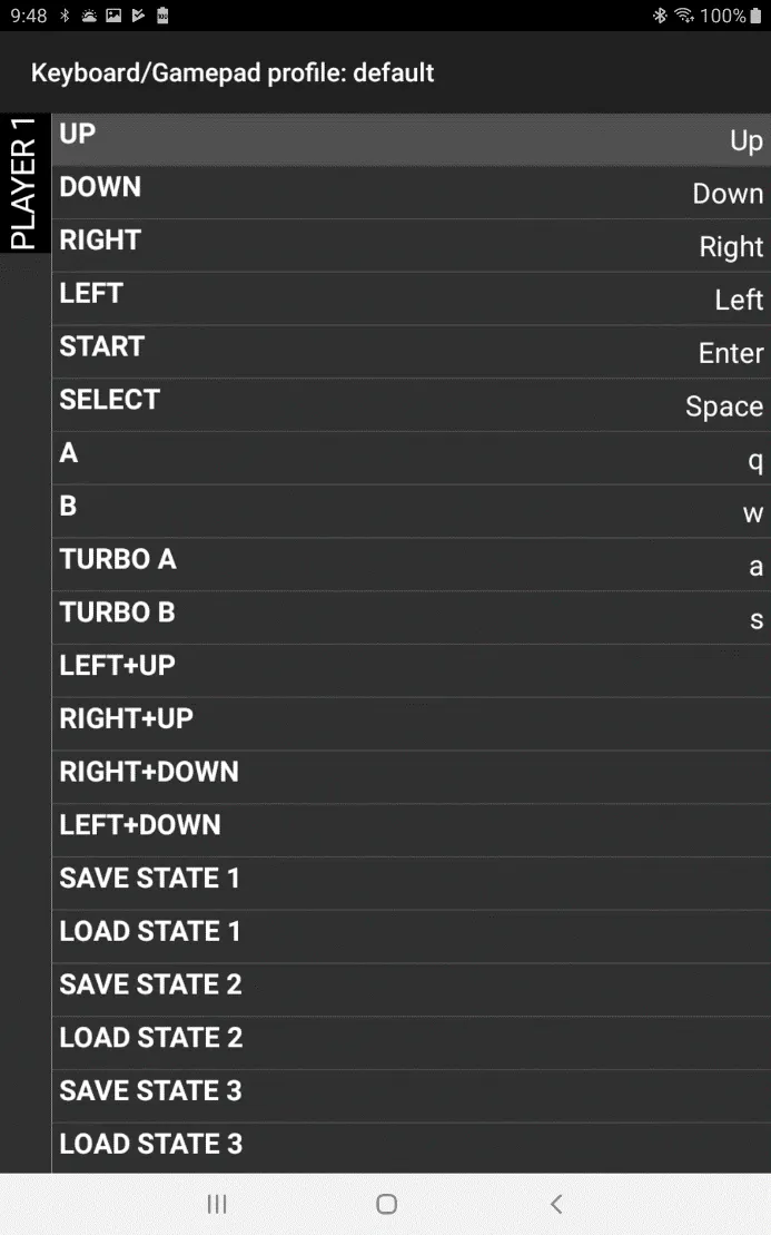 MENU와 FAST FORWARD는 목록 하단에 있습니다. 2인용 키 역시 같이 설정할 수 있습니다.